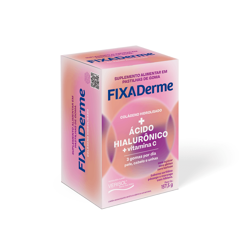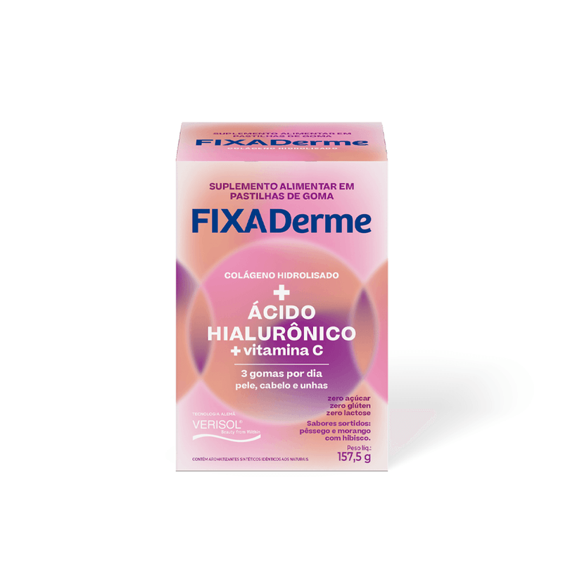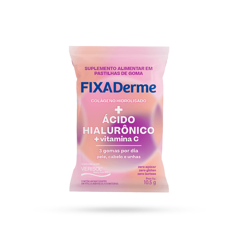 Você já imaginou que é possível cuidar da sua pele, unhas e cabelos de maneira fácil e prática?FixaDerme Hialurônico é um suplemento alimentar fácil de usar, com três gomas mastigáveis por dia, que melhora a saúde da pele, unhas e cabelos.