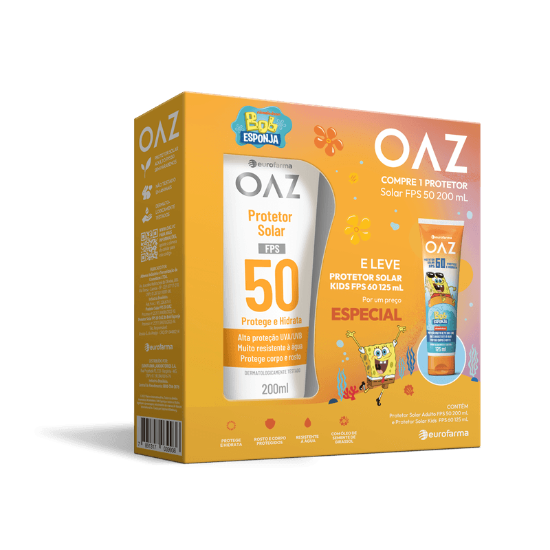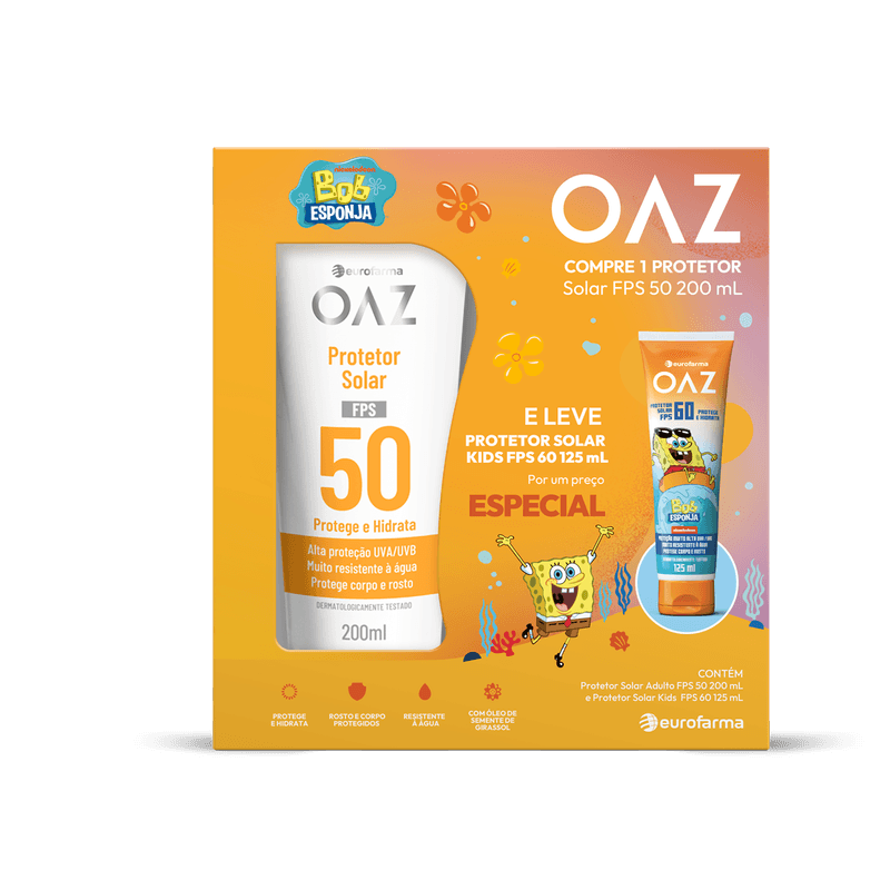 Kit promocional com 1 protetor solar FPS 50 200ml + 1 protetor kids bob esponja FPS 60 125ml