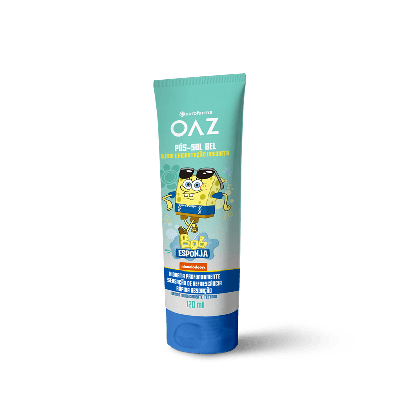 O pós-sol Hidratante em Gel do Bob Esponja hidrata intensamente a pele dos pequenos com aloe vera e mentol, garantindo sensação de alívio e frescor pós exposição solar. Possui fórmula vegana e sem adição de parabenos e é indicado para todos os tipos de pele.