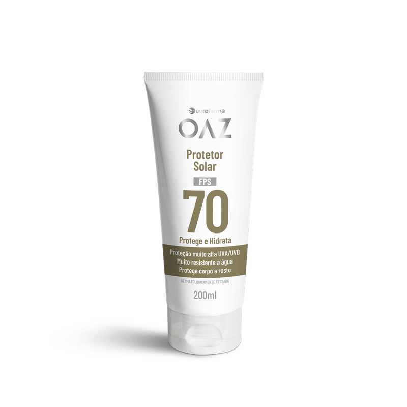 Com alto fator de proteção, o protetor solar 70FPS da OAZ é ideal para curtir os dias ensolarados sem se preocupar com os efeitos nocivos dos raios UVA/UVB. Sua fórmula vegana é dermatologicamente testada e é Oil Free, garantindo toque seco e saudável da pele.