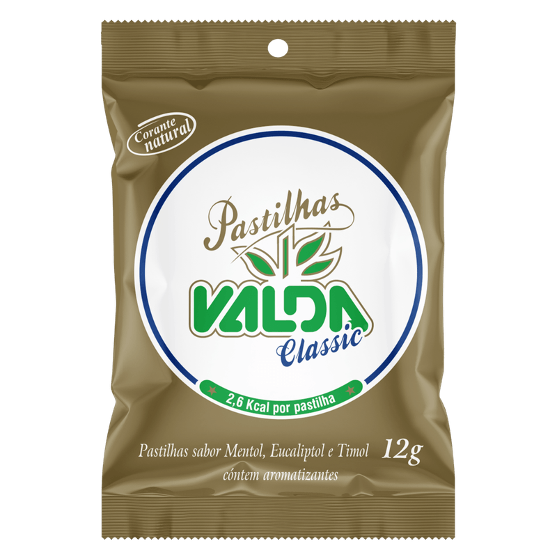 A Valda Classic é a pastilha ideal para aliviar irritações na garganta. O produto, com poucas calorias, possui sabor de menta e eucalipto, combate o mau hálito, proporcionando uma sensação de frescor. Pode ser consumida em qualquer ocasião.
