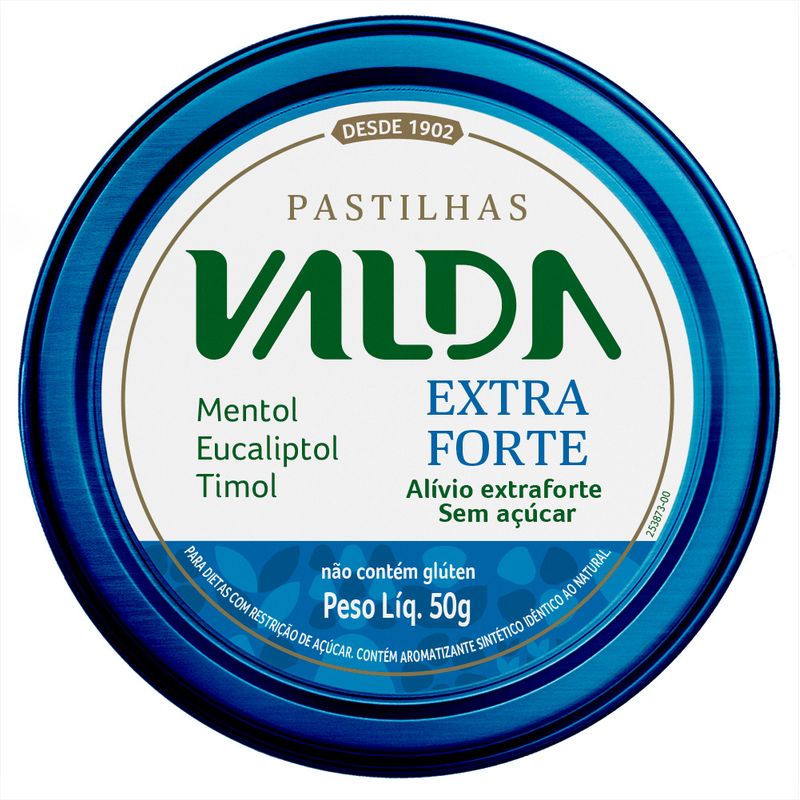 A Pastilha Valda Extra Forte Sem Açúcar oferece refrescância intensa com seu sabor extraforte, indicado para dietas restritivas, pois é zero açucar, Possui Mentol, Eucaliptol e Timol, aliviando incômods na garganta e deixando o hálito fresco.